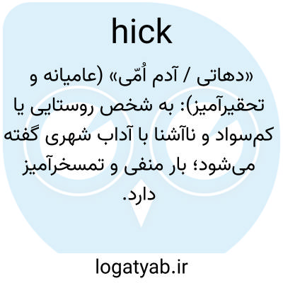 «دهاتی / آدم اُمّی» (عامیانه و تحقیرآمیز): به شخص روستایی یا کم‌سواد و ناآشنا با آداب شهری گفته می‌شود؛ بار منفی و تمسخرآمیز دارد.
