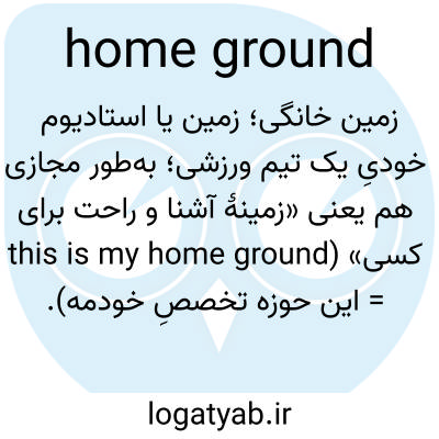 زمین خانگی؛ زمین یا استادیوم خودیِ یک تیم ورزشی؛ به‌طور مجازی هم یعنی «زمینهٔ آشنا و راحت برای کسی» (this is my home ground = این حوزه تخصصِ خودمه).