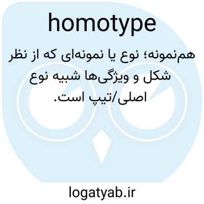 هموتایپ، hom′o-tīp، اسم. آنچه نوع ساختار بنیادی یکسانی با چیز دیگری دارد. - اسم.