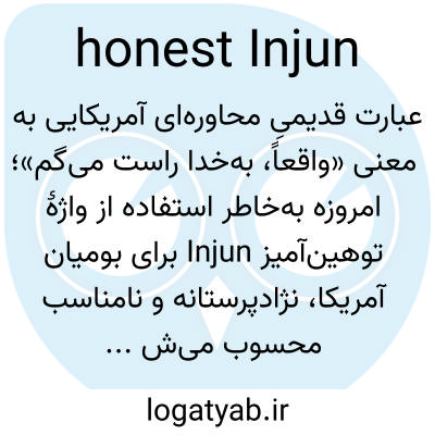 عبارت قدیمیِ محاوره‌ای آمریکایی به معنی «واقعاً، به‌خدا راست می‌گم»؛ امروزه به‌خاطر استفاده از واژهٔ توهین‌آمیز Injun برای بومیان آمریکا، نژادپرستانه و نامناسب محسوب می‌شود.