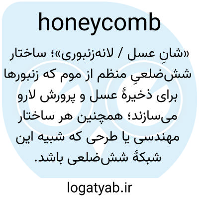 📌 ساختاری از ردیف‌هایی از سلول‌های مومی شش ضلعی که توسط زنبورها در کندو برای ذخیره عسل، گرده و تخم‌هایشان تشکیل می‌شود.