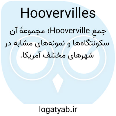 📌 اردوگاههای فقرا و بیخانمانها که در دوران رکود بزرگ پدیدار شدند. این اردوگاهها با نیتی طعنهآمیز به نام رئیسجمهور هربرت هوور نامگذاری شدند که در زمان شروع رکود بزرگ در سمت خود بود.