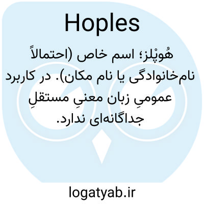 هُوپْلز؛ اسم خاص (احتمالاً نام‌خانوادگی یا نام مکان). در کاربرد عمومیِ زبان معنیِ مستقلِ جداگانه‌ای ندارد.