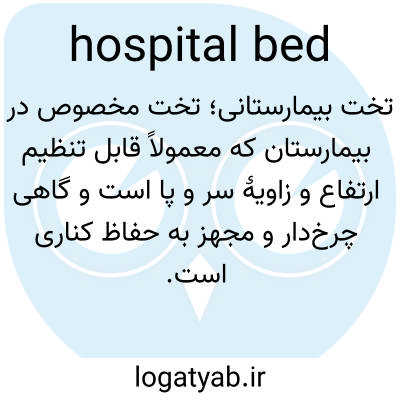 📌 تختی که دارای نردههای کناری است که میتوانند بالا یا پایین بروند و یک پایه تشک در سه بخش مفصلی دارد، به طوری که سر، پا یا وسط آن میتواند توسط یک میل لنگ یا موتور بالا برود و به بیمار اجازه دهد در موقعیتهای مختلف، به عنوان کمک درمانی یا برای راحتی، دراز بکشد.