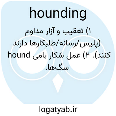 ۱) تعقیب و آزار مداوم (پلیس/رسانه/طلبکارها دارند hound می‌کنند). ۲) عمل شکار با سگ‌ها.