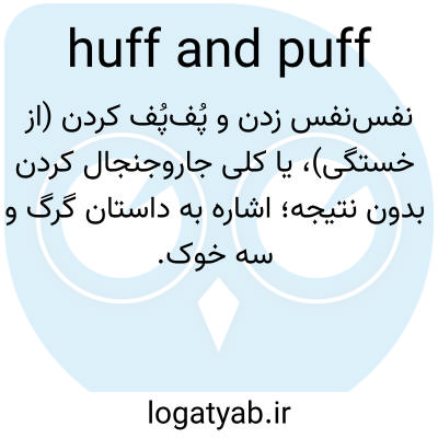 📌 تهدیدهای پر سر و صدا و توخالی بکنید؛ رجزخوانی کنید. برای مثال، می‌توانید هر چقدر دوست دارید در مورد هشدارهای طوفان غرغر کنید، اما ما وقتی آن را ببینیم باور خواهیم کرد. این عبارت از دو کلمه با ریشه قرن شانزدهمی استفاده می‌کند: huff به معنای «نفس نفس زدن در خشم» و puff به معنای «وزیدن در تندبادهای کوتاه» و به صورت مجازی به معنای «باد کردن» یا «خودبزرگ‌بینی کردن». این دو کلمه در داستان کودکانه آشنای «سه خوک کوچولو» با هم ترکیب شده‌اند، جایی که گرگ بدجنس هشدار می‌دهد: «من غرغر می‌کنم و پف می‌کنم و خانه‌ات را خراب می‌کنم»؛ قافیه به بقای این اصطلاحات کمک کرده است.