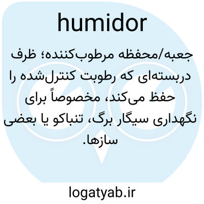 📌 ظرف یا انباری برای سیگار یا سایر فرآورده‌های تنباکو، مجهز به وسایلی برای حفظ سطح رطوبت مناسب جهت مرطوب نگه داشتن تنباکو.