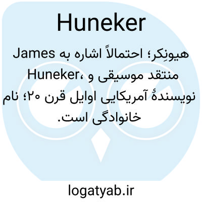 هیو‌نِکر؛ احتمالاً اشاره به James Huneker، منتقد موسیقی و نویسندهٔ آمریکایی اوایل قرن ۲۰؛ نام خانوادگی است.