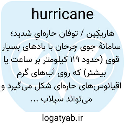 هاریکِین / توفان حاره‌ایِ شدید؛ سامانهٔ جوی چرخان با بادهای بسیار قوی (حدود ۱۱۹ کیلومتر بر ساعت یا بیشتر) که روی آب‌های گرم اقیانوس‌های حاره‌ای شکل می‌گیرد و می‌تواند سیلاب و خسارت گسترده ایجاد کند.