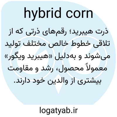 📌 ذرت دورگه، به ویژه دانه ذرتی که از طریق هیبریداسیون گونه‌های مکرراً خودگشن و بنابراین از نظر ژنتیکی خالص، ایجاد شده است.