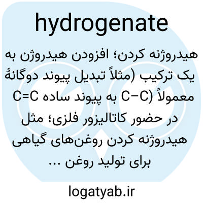 📌 ترکیب یا عملآوری با هیدروژن، به ویژه افزودن هیدروژن به مولکول (یک ترکیب آلی غیراشباع).