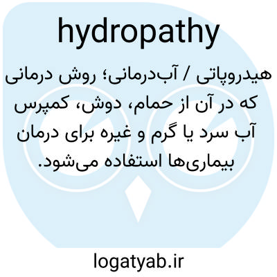 هیدروپاتی / آب‌درمانی؛ روش درمانی که در آن از حمام، دوش، کمپرس آب سرد یا گرم و غیره برای درمان بیماری‌ها استفاده می‌شود.