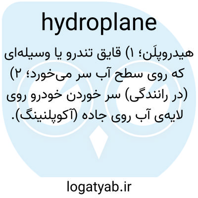 📌 همچنین (لاستیک یا وسیله نقلیه) که روی لایهای از آب روی سطح مرطوب حرکت کند و در نتیجه باعث کاهش کارایی ترمز و فرمان شود.
