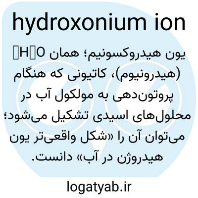 📌 همچنین به آن: یون هیدرونیوم گفته میشود. یون مثبتی به نام H3O+ که از اتصال یک پروتون به مولکول آب تشکیل میشود: در محلولهای اسیدها وجود دارد و مانند یون هیدروژن رفتار میکند.