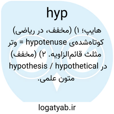 هایپ؛ ۱) (مخفف، در ریاضی) کوتاه‌شده‌ی hypotenuse = وتر مثلث قائم‌الزاویه. ۲) (مخفف) hypothesis / hypothetical در متون علمی.