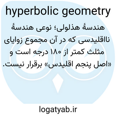 📌 شاخهای از هندسه نااقلیدسی که اصل توازی هندسه اقلیدسی را با این اصل جایگزین میکند که دو خط مجزا را میتوان از طریق نقطهای غیر از خط داده شده، موازی با یک خط معین رسم کرد.