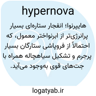 هایپرنوا؛ انفجار ستاره‌ای بسیار پرانرژی‌تر از ابرنواختر معمول، که احتمالاً از فروپاشی ستارگان بسیار پرجرم و تشکیل سیاهچاله همراه با جت‌های قوی به‌وجود می‌آید.