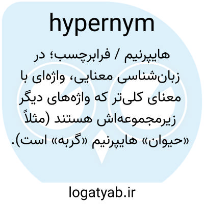 در عبارت «سگ، پودل، حیوان»، کلمه حیوان، هایپرنیم (hypernym) است که واژگان را در طبقهبندیهای مفید برای موتورهای جستجو و زبانشناسان سازماندهی میکند.