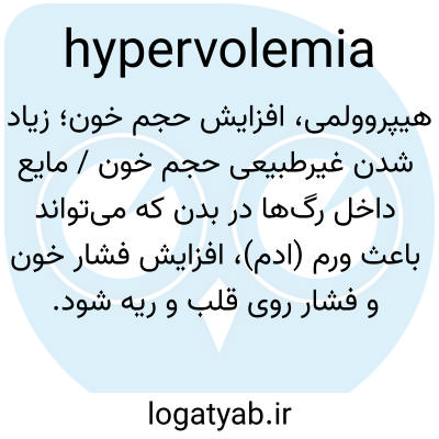 هیپروولمی، افزایش حجم خون؛ زیاد شدن غیرطبیعی حجم خون / مایع داخل رگ‌ها در بدن که می‌تواند باعث ورم (ادم)، افزایش فشار خون و فشار روی قلب و ریه شود.