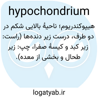 هیپوکندریوم؛ ناحیهٔ بالایی شکم در دو طرف، درست زیر دنده‌ها (راست: زیر کبد و کیسهٔ صفرا، چپ: زیر طحال و بخشی از معده).