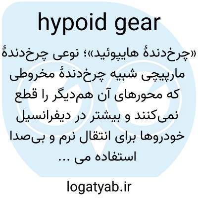 «چرخ‌دندهٔ هایپوئید»؛ نوعی چرخ‌دندهٔ مارپیچی شبیه چرخ‌دندهٔ مخروطی که محورهای آن هم‌دیگر را قطع نمی‌کنند و بیشتر در دیفرانسیل خودروها برای انتقال نرم و بی‌صدا استفاده می‌شود.