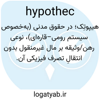 هیپوتک، هایپوتک، اسم. در قانون اسکاتلند، حق رهن یا وثیقه بر کالا در رابطه با بدهی صاحب کالا. - صفت.