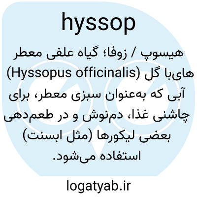 📌 هر یک از چندین گیاه معطر متعلق به جنس Hyssopus از خانواده نعناع، به ویژه H. officinalis، بومی اروپا، دارای خوشههایی از گلهای کوچک آبی.