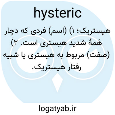 هیستریک؛ ۱) (اسم) فردی که دچار هَمهٔ شدید هیستری است. ۲) (صفت) مربوط به هیستری یا شبیه رفتار هیستریک.
