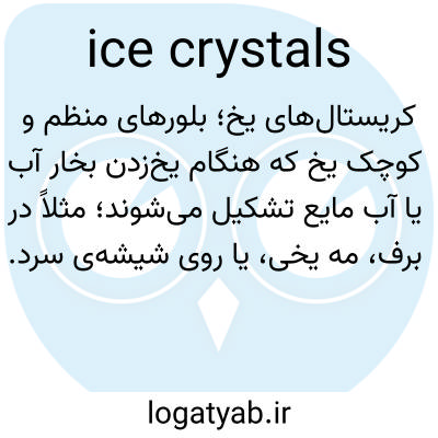 کریستال‌های یخ؛ بلورهای منظم و کوچک یخ که هنگام یخ‌زدن بخار آب یا آب مایع تشکیل می‌شوند؛ مثلاً در برف، مه یخی، یا روی شیشه‌ی سرد.
