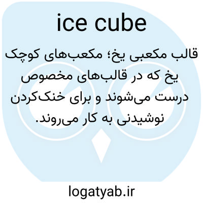 📌 یک تکه یخ کوچک، مانند یخی که در سینی مخصوصی در محفظه انجماد یخچال یا توسط دستگاه یخ‌ساز ساخته می‌شود.