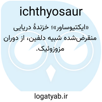 📌 هر خزنده دریایی ماهیمانند از راسته منقرضشده ایکتیوسوریا، با طولی بین ۱.۲ تا ۱۲ متر و بدنی گرد و باریک، سری بزرگ، چهار باله پارومانند و یک باله دمی عمودی.