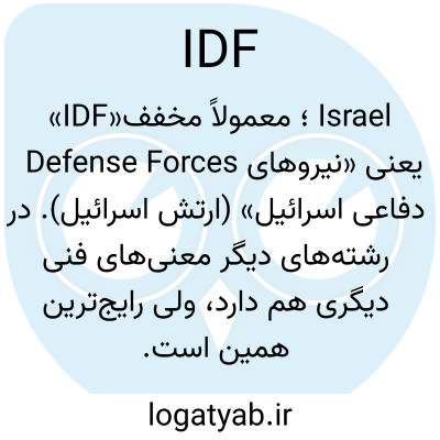 «IDF»؛ معمولاً مخفف Israel Defense Forces یعنی «نیروهای دفاعی اسرائیل» (ارتش اسرائیل). در رشته‌های دیگر معنی‌های فنی دیگری هم دارد، ولی رایج‌ترین همین است.