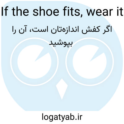 📌 اگر چیزی متعلق به شماست یا به شما مربوط میشود، آن را بپذیرید. این ضربالمثل ابتدا به صورت «اگر کلاه جا شود» ظاهر شد که احتمالاً به کلاه احمق اشاره داشته است. نسخه بعدی آن رایجتر شده و با دمپایی شیشهای در افسانه «سیندرلا» مرتبط است.