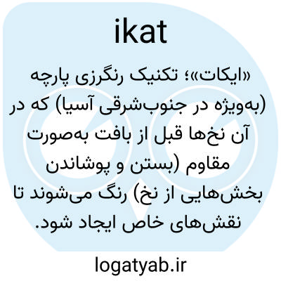 «ایکات»؛ تکنیک رنگرزی پارچه (به‌ویژه در جنوب‌شرقی آسیا) که در آن نخ‌ها قبل از بافت به‌صورت مقاوم (بستن و پوشاندن بخش‌هایی از نخ) رنگ می‌شوند تا نقش‌های خاص ایجاد شود.