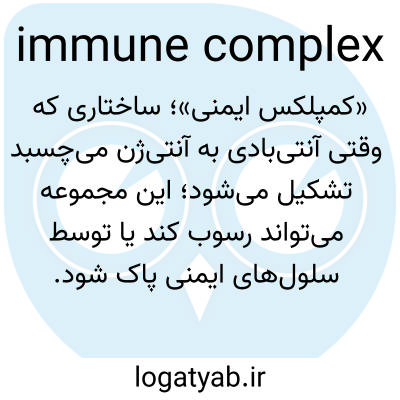 «کمپلکس ایمنی»؛ ساختاری که وقتی آنتی‌بادی به آنتی‌ژن می‌چسبد تشکیل می‌شود؛ این مجموعه می‌تواند رسوب کند یا توسط سلول‌های ایمنی پاک شود.