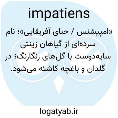 📌 هر یک از گیاهان متعدد متعلق به جنس Impatiens، از خانوادهی گل حنا، که گلهای نامنظمی دارند که در آنها کاسهی گل و جام گل به وضوح قابل تشخیص نیستند و میوهای میدهند که میشکفد و دانهها را پراکنده میکند.