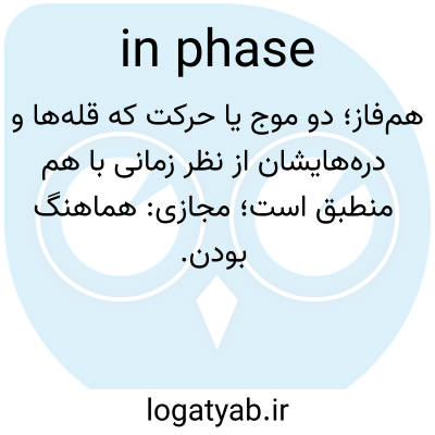 📌 همچنین، در هماهنگی. به صورت همبسته یا هماهنگ؛ هماهنگ، در هماهنگی. به عنوان مثال، اگر همه در فاز بودند، میتوانستیم برنامه را جلو ببریم، یا جان و پت اغلب همزمان یک چیز را میگویند؛ ذهن آنها کاملاً هماهنگ است. هر دو نسخه از این اصطلاح به پدیدههای فیزیکی اشاره دارند. اولی، که قدمت آن به نیمه دوم دهه 1800 میلادی برمیگردد، به قرار داشتن در یک مرحله در یک سری حرکات اشاره دارد. دومی، مخفف عامیانه همگامسازی که قدمت آن به اواسط دهه 1900 میلادی برمیگردد، به همزمانی دقیق در زمان یا سرعت حرکت اشاره دارد. همچنین به in step؛ phase in؛ برای متضاد، به out of phase مراجعه کنید.