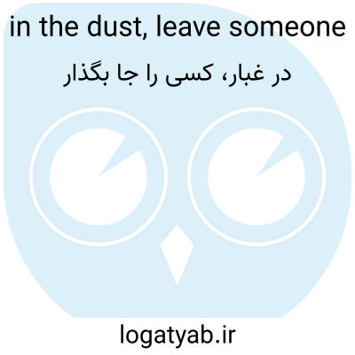 📌 یکی را خیلی عقب بگذار، مثل یک مسابقه یا رقابت. برای مثال، این استراتژی بازاریابی دیگران را در گرد و غبار جا میگذارد. این اصطلاح استعاری به گرد و غباری که توسط یک اسب یا وسیله نقلیه سریع بلند میشود اشاره دارد.