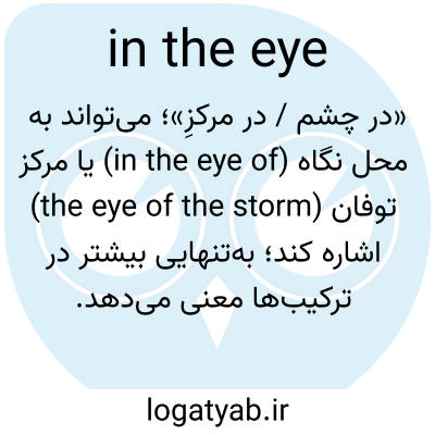📌 علاوه بر اصطلاحی که با in the eye شروع میشود، در چشم ذهن خود دیدن (see in the mind’s eye)؛ در چشم عموم (in the public eye)؛ به صورت (چشم) کسی نگاه کردن (see one in the face) را نیز شامل میشود.