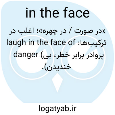 📌 علاوه بر اصطلاحی که با in the face شروع میشود، اصطلاحات زیر را نیز ببینید: آبی روی صورت؛ پرواز روی صورت؛ نگاه کردن به صورت؛ سرخ روی صورت؛ سیلی زدن به صورت؛ خیره شدن به صورت؛ دست کسی را گرفتن (تا کبودی روی صورت).
