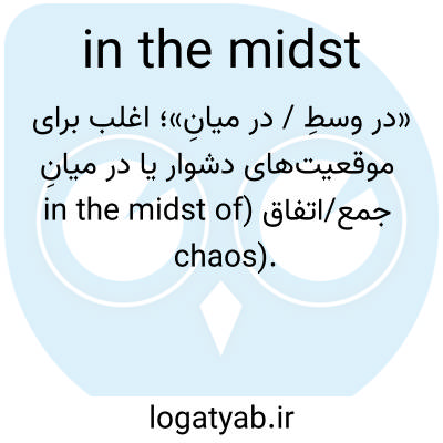 📌 همچنین، در میان کسی. احاطه شده توسط، در میان، مثلاً اینکه من یک چهره آشنا را در میان جمعیت دیدم، یا اینکه فکر کنم یک برنده جایزه نوبل در میان ما بود! [حدود قرن شانزدهم]