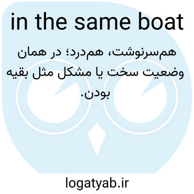 📌 همچنین، همه در یک قایق. در یک موقعیت مشابه، در یک موقعیت. برای مثال، همه کار زیادی دارند - همه ما در یک قایق هستیم. این عبارت به خطراتی که مسافران یک قایق کوچک در دریا با آن مواجه هستند اشاره دارد. [اواسط دهه ۱۸۰۰]