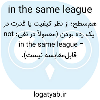 📌 در همان سطح از مهارت، در همان کلاس، مانند «به عنوان یک نجار»، بیل آرزو میکند که در همان سطح کارل، که یک استاد نجار است، باشد. این عبارت استعاری به لیگهای باشگاههای بیسبال اشاره دارد که به عنوان اصلی یا فرعی طبقهبندی میشوند. اغلب به صورت منفی به عنوان عدم همسطح بودن بیان میشود، مانند «این رستوران در همان سطح کافه فرانسوی آن طرف خیابان نیست». [اوایل دهه 1900]