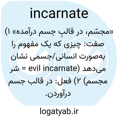 «مجسّم، در قالبِ جسم درآمده» ۱) صفت: چیزی که یک مفهوم را به‌صورت انسانی/جسمی نشان می‌دهد (evil incarnate = شر مجسم) ۲) فعل: در قالب جسم درآوردن.