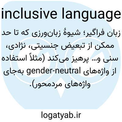📌 زبانی که از استفاده از عبارات یا کلمات خاصی که ممکن است به عنوان طرد گروههای خاصی از مردم تلقی شوند، اجتناب میکند، به ویژه کلمات خاص جنسیتی، مانند "مرد"، "بشریت" و ضمایر مذکر که استفاده از آنها ممکن است به عنوان طرد زنان تلقی شود.
