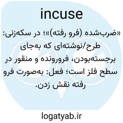 💡 Incuse, in-kūz′, v.t. to impress by stamping, as a coin.—adj. hammered.—n. an impression, a stamp.