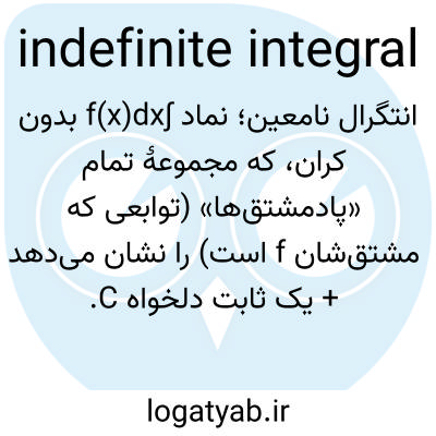انتگرال نامعین؛ نماد ∫f(x)dx بدون کران، که مجموعهٔ تمام «پادمشتق‌ها» (توابعی که مشتق‌شان f است) را نشان می‌دهد + یک ثابت دلخواه C.