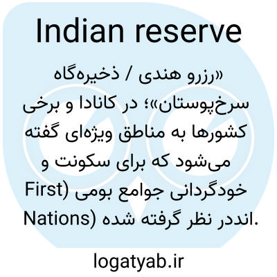 «رزرو هندی / ذخیره‌گاه سرخ‌پوستان»؛ در کانادا و برخی کشورها به مناطق ویژه‌ای گفته می‌شود که برای سکونت و خودگردانی جوامع بومی (First Nations) در نظر گرفته شده‌اند.