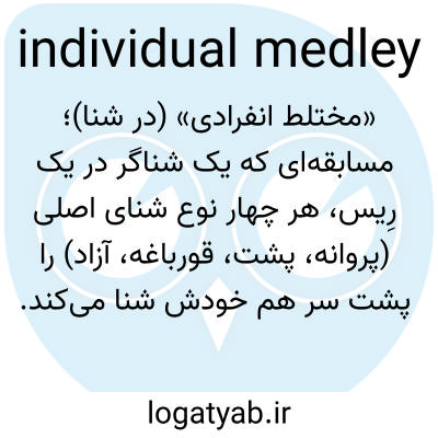 «مختلط انفرادی» (در شنا)؛ مسابقه‌ای که یک شناگر در یک رِیس، هر چهار نوع شنای اصلی (پروانه، پشت، قورباغه، آزاد) را پشت سر هم خودش شنا می‌کند.