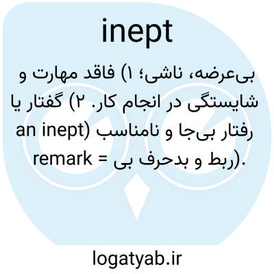 بی‌عرضه، ناشی؛ ۱) فاقد مهارت و شایستگی در انجام کار. ۲) گفتار یا رفتار بی‌جا و نامناسب (an inept remark = حرف بی‌ربط و بد).